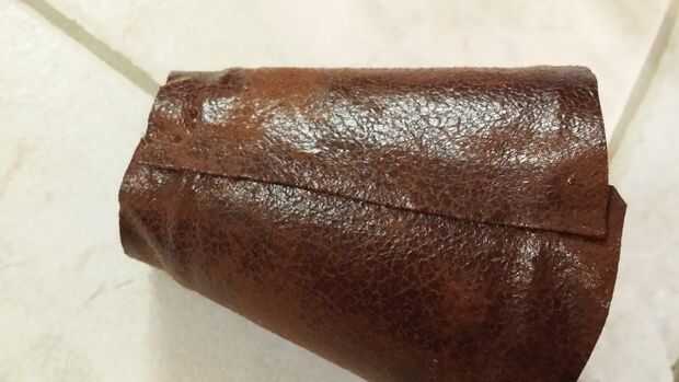 Aplique una gota de pegamento caliente a lo largo de la línea en la Copa y fije el borde desplegado de la tela al revés contra la Copa. Presione bien para evitar grumos de pegamento.