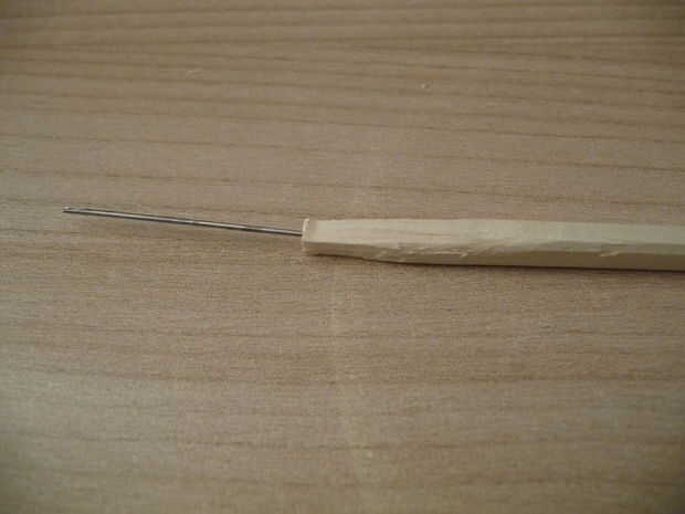 Para montar su "pincel" a pone la aguja de 0,5 cm (0.2 pulgadas) en el palillo. Ahora tienes un pincel solo gota exacto!