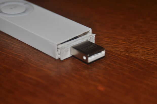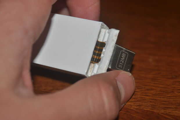 Para abrir el pendrive, husmear su clavo en la costura donde se encuentra con la carcasa. El caso debe pop justo al lado.