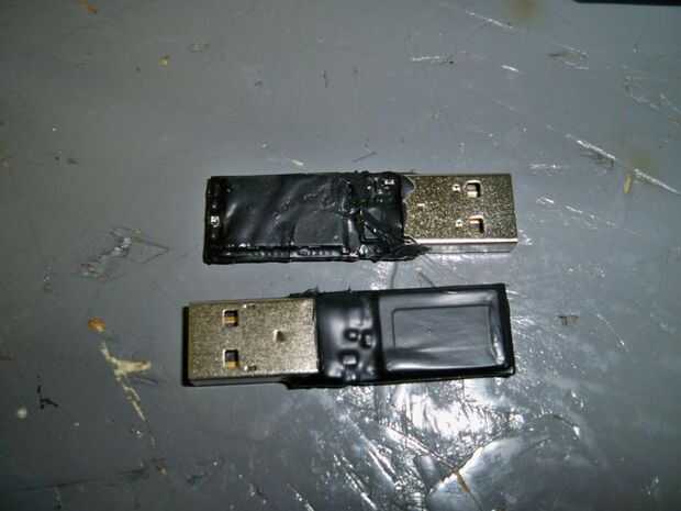 Usé un viejo puede de PLASTIDIP a slather el caucho sobre el desnudo USB discos.