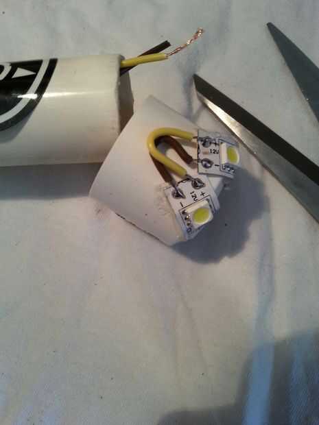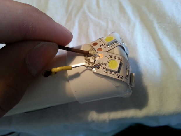 6. prepare los cables más pequeños ahora dos (uno amarillo y uno marrón) para conectar el otro tira de la luz LED. y soldadura en.