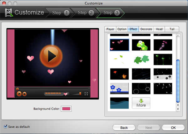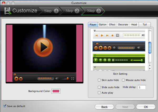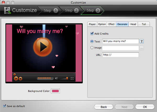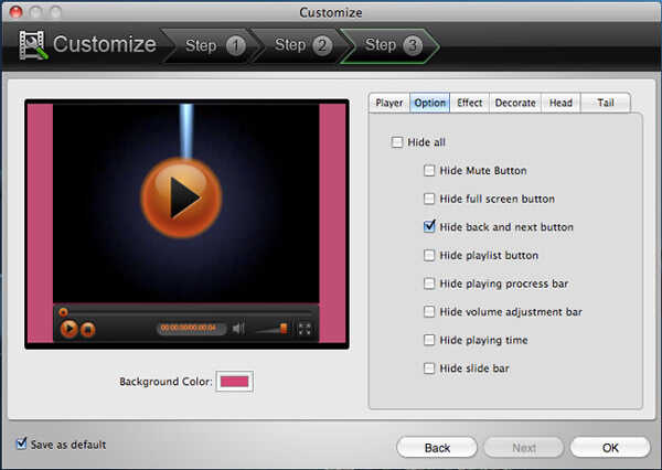 Cuando primero vaya al paso 3 de la ventana de "Personalizar", verá una lista de jugadores que puede elegir. Si se desplaza hacia la parte inferior de esta lista, será más "Descargar", haga clic en él y se pueden descargar reproductores más Flash gratis. También puede establecer el color de fondo para ti video. Seleccione el reproductor que prefiera y haga clic en la pestaña de "Opción" para ir al siguiente paso.
