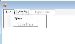 En la sección 'Menús y barras de herramientas' del cuadro de herramientas arrastre una tira de menú al formulario y dejarlo caer. Debería llamarse MenuStrip1. En la franja del menú en el formulario será un cuadro que dice ' tipo '. En el primer cuadro Escriba la palabra archivo. Haga clic en el cuadro de abajo y escriba la palabra abierta.