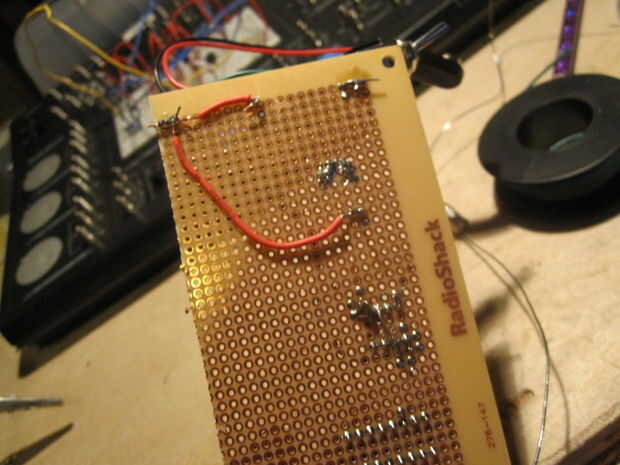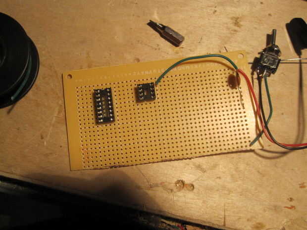 conectar la tierra de la snap 9v en el pin central del interruptor, conectar otro cable con el conector externo y conectarlo a la Junta para todas las conexiones a tierra. Conecte el lado positivo directamente. poner un.01 uf del condensador de energía a tierra.