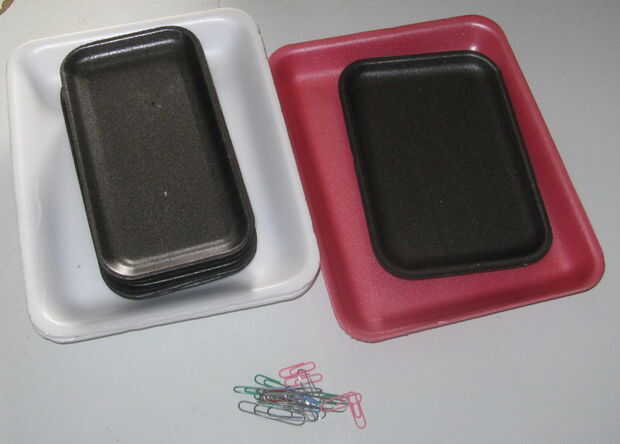 Ahora usted puede comprar poliestireno delgado de una tienda de hobby o un dólar o dos tienda; pero yo soy grande en la reasignación de materiales que ya tengo, por lo que hago fuera de las bandejas de poliestireno que al ir de compras. Estas son las bandejas que vienen con la carne y productos frescos.