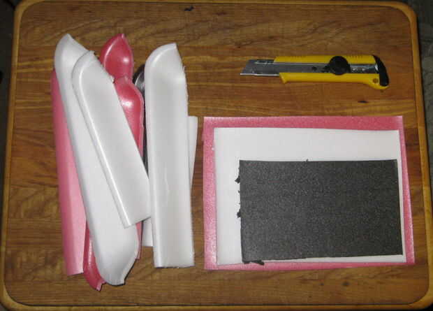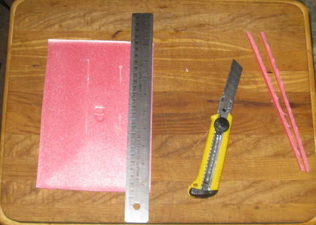 Empezar por recortar los lados de las bandejas hasta el fondo plano, esto es muy importante. Es casi imposible hacer un corte estrecho en el poliestireno si arcos bajo la presión del borde estrecho o los lados limitan la longitud del borde estrecho.