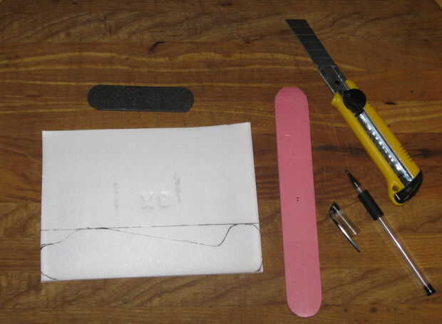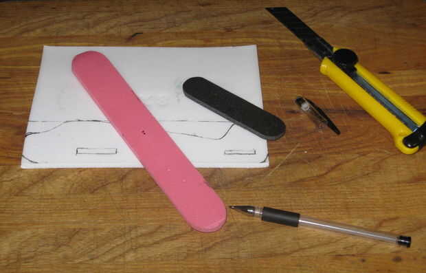 Esboce el contorno del fuselaje en el poliestireno con ancho y largo del ala como debe ser una referencia de cómo largo y alto del fuselaje.