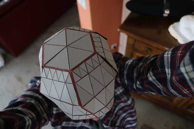 los estudiantes de primer año en mi escuela crearon una línea de trajes con temática marina de cartón reciclado con construcción ranurado para el montaje. Los trajes eran a la medida de los niños de la escuela secundaria en Halloween y tuvo que ser d
