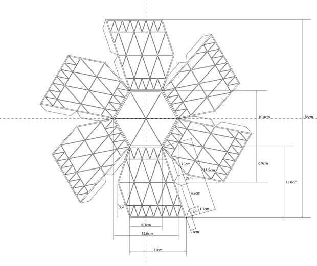 Primero cortamos la forma desplegada del casco de la textil usando la tiza para dibujar la forma en la industria textil y también unas tijeras por supuesto. En el archivo adjunto encontrará un archivo de Illustrator con todas las mediciones de la forma desplegada y el otro archivo es la forma desplegada sin medidas. Si imprimes este último archivo se puede dibujar con la tiza alrededor de la forma impresa. Esto hace la vida más fácil. Después de dibujar la forma usted recórtalo con la tijera.