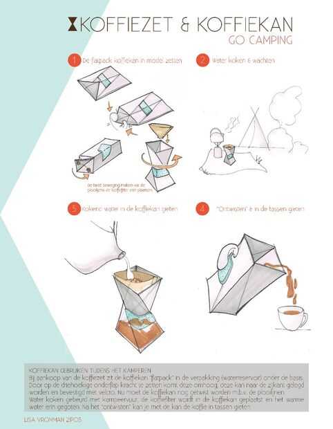 - Apretando las 4 líneas diagonal plegables de la cafetera, se tuerza en una forma de reloj de arena, ahora usted puede poner en el filtro de café y hacer café!