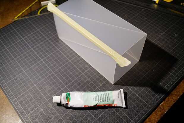 Cuando las 2 partes están secas, los 4 lados de la parte inferior necesitan estar pegado a la cafetera a una forma resistente al agua.