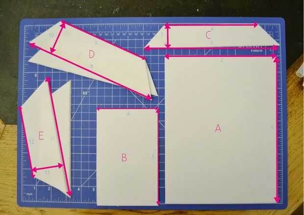 Para aclarar las dimensiones, he numerado todas las dimensiones en la foto y también nombrado cada parte: