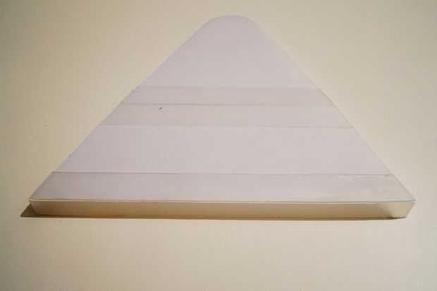 El triángulo: parte inferior 12,5 cm - 8 cm de altura - subiendo en un ángulo de 60° con una tapa redonda de ø 3 cm