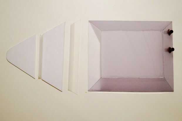 Esta solapa que se cierra el envase del tanque de agua se compone de 2 partes. Estas piezas se conectará mediante el uso de la placa flexible del PP que usaremos para hacer la cafetera. Mediante el uso de este material, la aleta en abierto kan cerrar fácilmente.