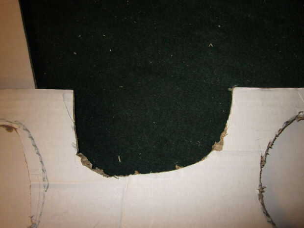 Corte en un semicírculo con una navaja (T2) en la parte superior una almohadilla de corte (T1)