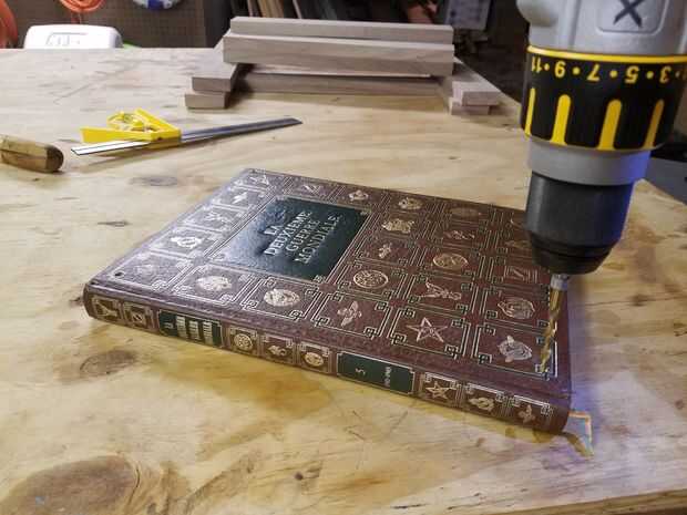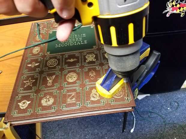 Una vez que cada libro es pre perforado interruptor pedacitos de taladro (3/16) y taladrar los agujeros a su tamaño final.