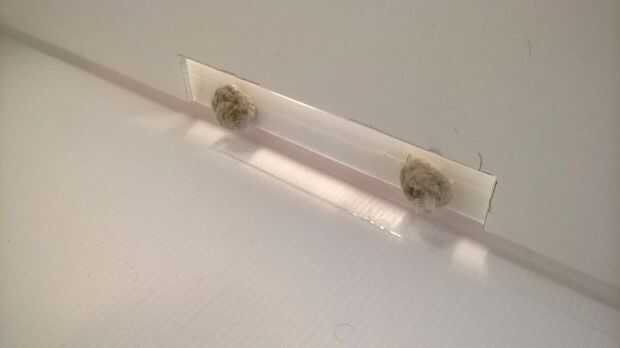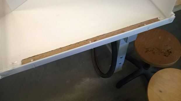Primero usted doblar hacia dentro los bordes de la mesa y asegurarse de que el alinear los agujeros. Poner el pin en el y usar algunas cintas para mantenerlo en su lugar con.