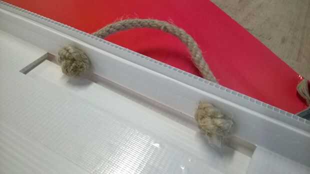 Ahora reforzamos la parte superior con zipties. Perforar los agujeros en ambos lados de las manijas y los lazos zip a través del palillo. Estos asegure firmemente.