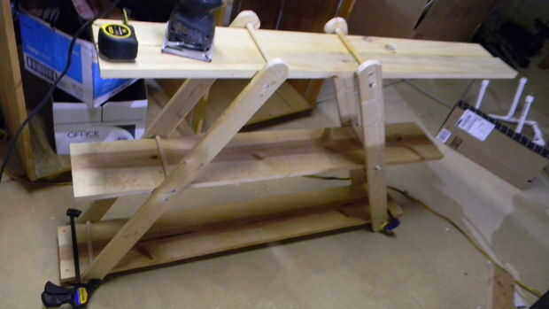 Aquí el único límite es tu imaginación. Usted puede elegir cualquier tamaño de los materiales. Incluye la longitud de los estantes. Usted puede hacer los estantes en cualquier lugar de 3 pies a 5 pies de largo. Para una mirada tradicional, puede cortar a todos para tener la misma longitud. Para ser más artístico, tienen un estante más corto en la parte superior para seguir el ángulo de las piernas, que se asemeja a un estante escalera-como. Lije todas las superficies. Puesto que todos los componentes se pueden desmontar fácilmente, la coloración puede hacerse en un momento posterior. Yo no he decidido aún el color de la mancha pero me estoy inclinando en algo rústico.
