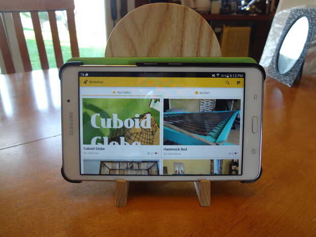 el producto terminado (arriba)La necesidad de un rápido y sucio iPad stand hecho estallar para arriba, así que tomó un par piezas de desecho Plyboo y gritó algo hacia arriba.TechShop en Menlo Park (www.TechShop.com) tiene una gran cantidad de herrami