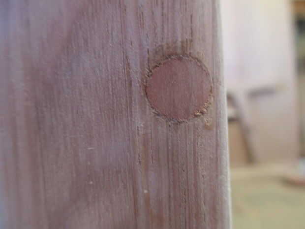 Algunos agujeros se llenaron de Tasmania Myrtle tapones en contraste.