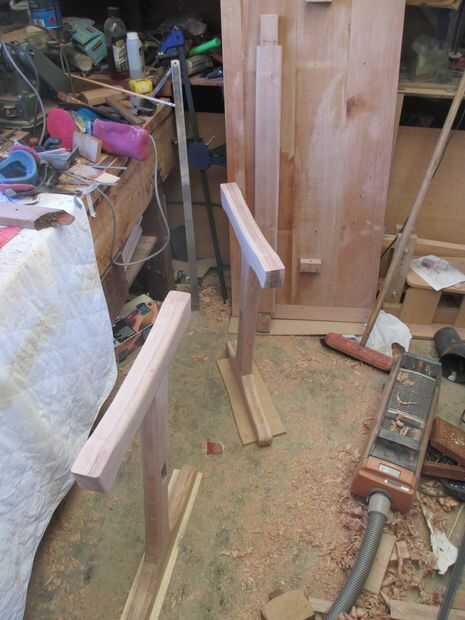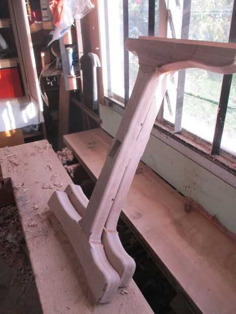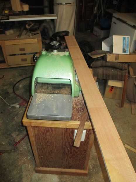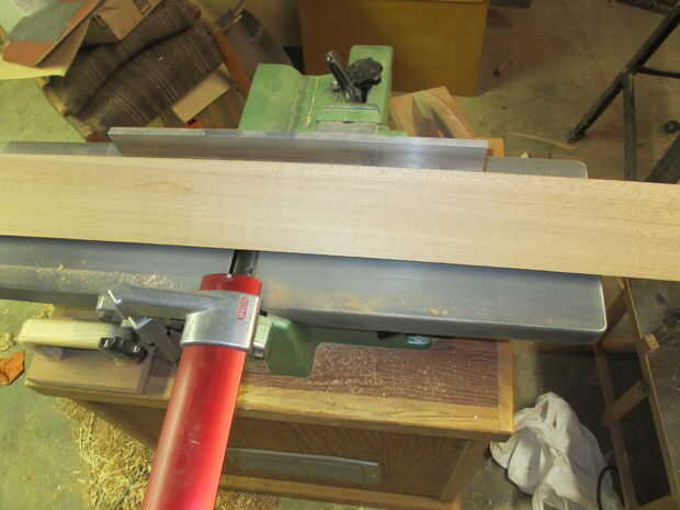 Los componentes de extensor largo fueron limpiados de barniz y luego ejecutar a través de mis máquinas para llevar al espesor final antes de ser pegada en un espacio en blanco más grueso. Como con todas las piezas más gruesas en esta compilación, la camilla se hizo de 3 tableros.