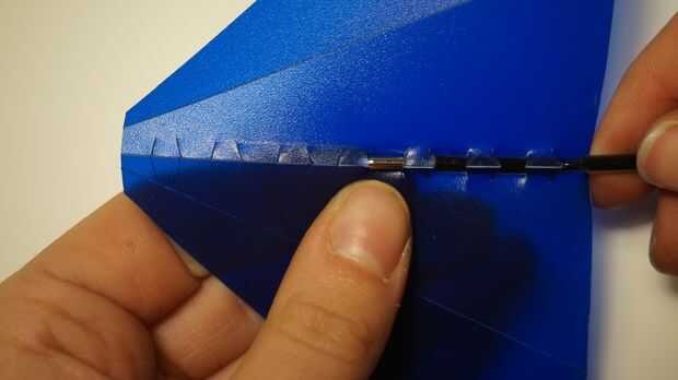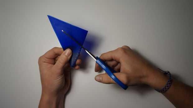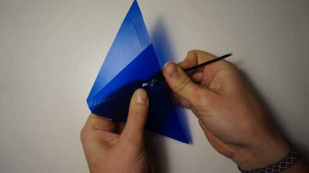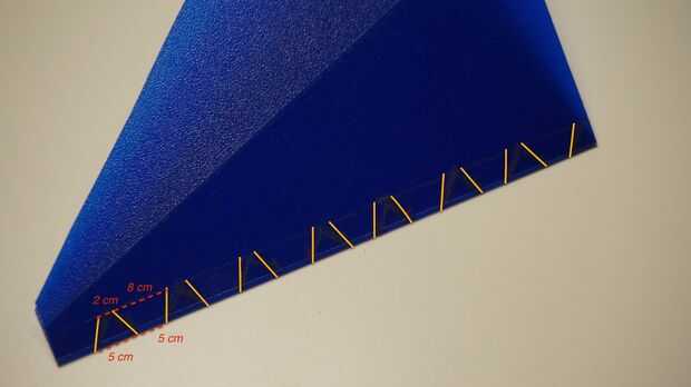 Dibujar un patrón de trapecios en el lado pliegue y hacer las incisiones según la línea naranja.