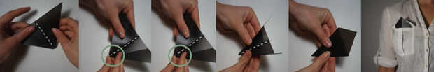 Doblar las dos esquinas en el centro y empujar la pluma de la tinta hacia dentro. Ahora usted puede poner en el bolsillo.