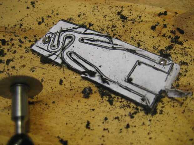 Utilizando una Dremel herramienta corte la plantilla a la forma.