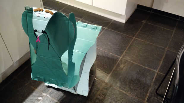 Decidió hacer un caballo y subió con este diseño. El caballo es completamente hecho de cartón corrugado porque la mayoría de la gente tiene una cantidad bastante grande de cartulina de mentira alrededor están haciendo nada útil. Porque todo es de cartón, es muy fácil de personalizar con lápices de colores / marcadores / textil / etc etc. Por ejemplo, mi idea inicial era sacar un juego de mesa, por lo que también es utilizable cuando el caballo es plano.