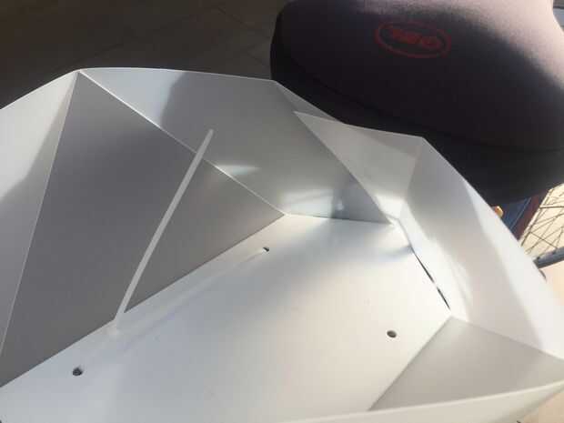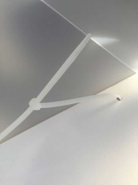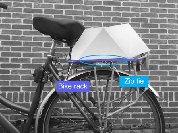 Uno de los pasos finales es Coloque la cesta de la bicicleta en el portabicicletas. Tome un zip empate (o Coloque 2 abrazaderas de plástico a unos de otros, depende de cuánto son tus lazos zip) y a través del agujero en la placa inferior. Páselo a través de su bicicleta rack por lo que puede volver atrás en el otro orificio de la placa inferior. Ahora Conecte el extremo de la amarra al inicio de la amarra a cerrar su ciclo.