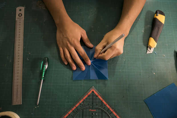 Cuando todo lo había cortado un poco, se puede doblar cada incisión un poco más. No vaya demasiado rápido. Aplicar una pequeña fuerza en aumento cuando se siente seguro. Después de que has plegado esto puede comenzar en la segunda parte.