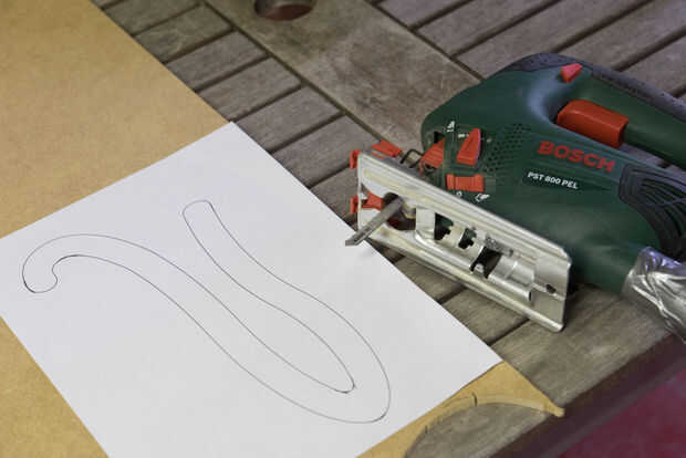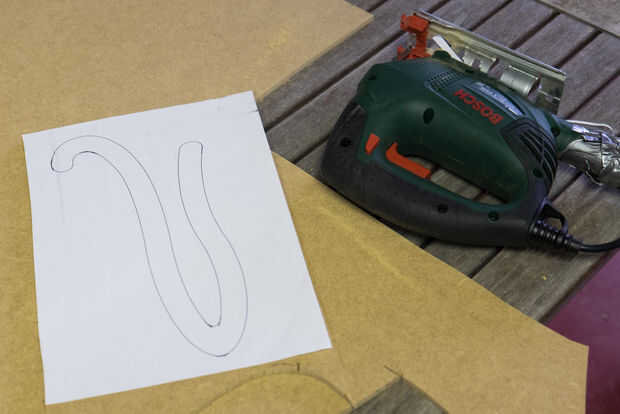 • Vio una forma áspera con la sierra caladora hacia fuera y VI entonces en las líneas negras de la plantilla.