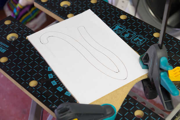 • Pega las plantillas sobre el MDF con el pegamento de la manía.