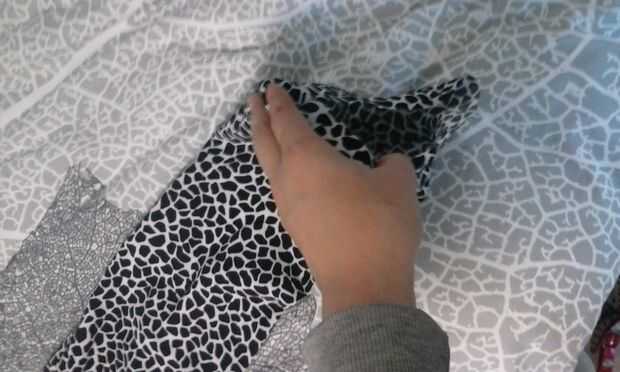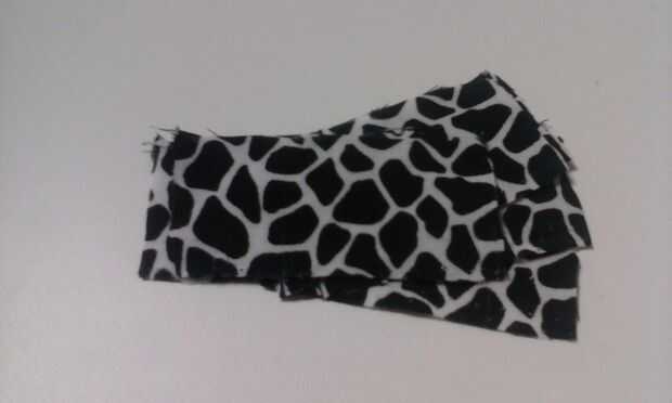 -Cortar la tela con el patrón: 30 x 75 mm, estas son cintas para los agujeros a los lados.