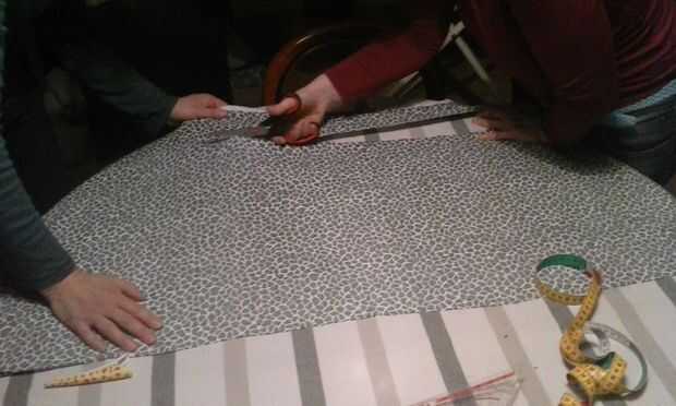 -Cortar la tela con el patrón: 250 x 1800 mm, 4 veces para alrededor de las capas.