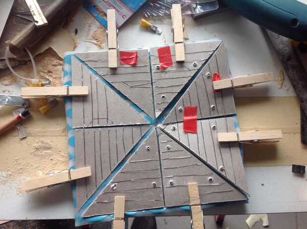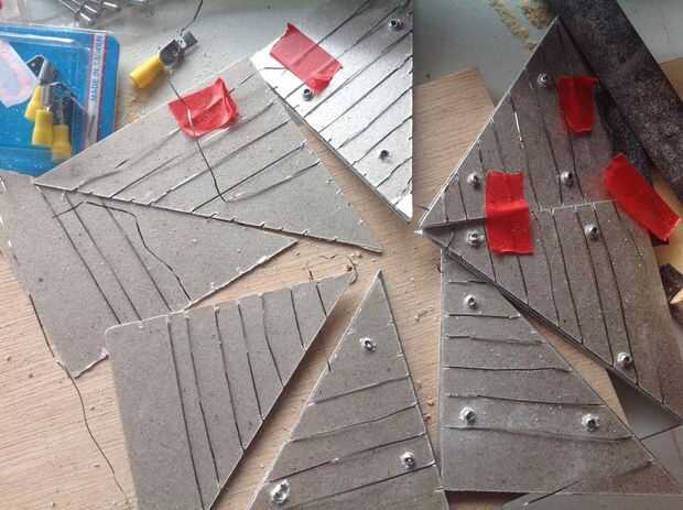1. cortar el aluminio que mismo agarrar como sus triángulos de mica.