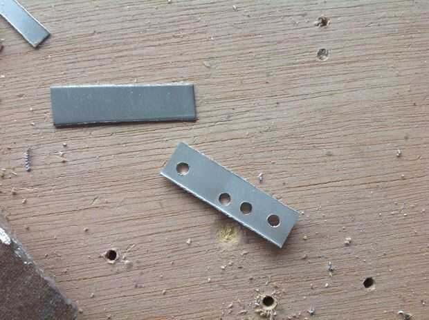 He loco que la pequeña placas fuera un resto de aluminio. Flexión sobre la esquina de la mesa o el corte con un cortador le hará capaces de tener estas piezas. Luego perforé 4 agujeros M3.