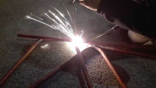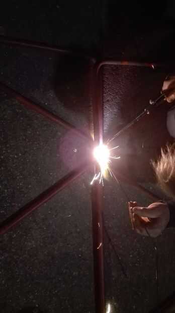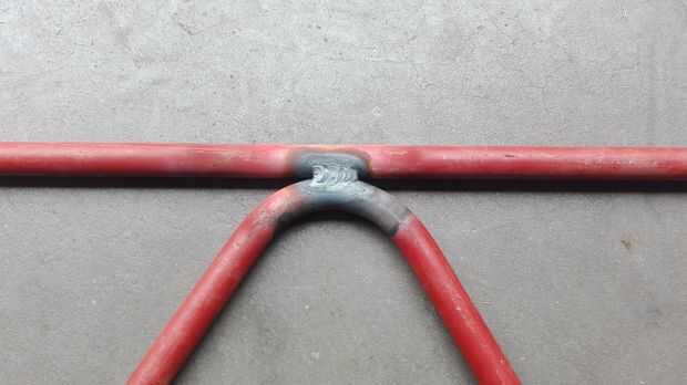 Después de los tubos se curva en la forma correcta sólo necesitan dos soldaduras para reforzar el marco.