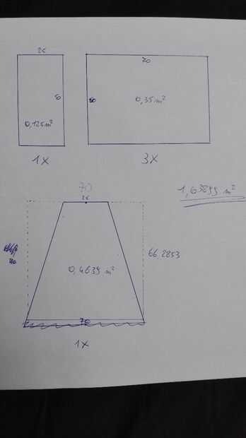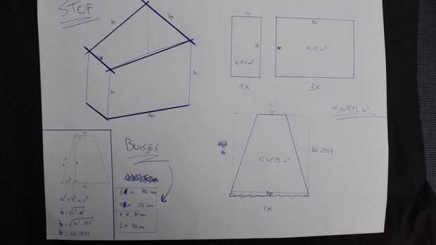 Se empieza por cortar la lona en forma correcta. (las medidas están en la imagen)