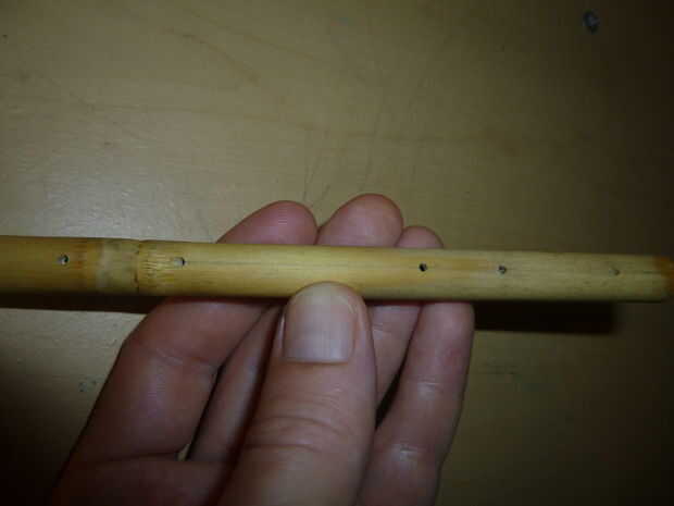 Asegúrese de que después de la perforación noquear a cualquier bambú polvo y la suciedad hacia fuera ya que esto puede hacer flauta no juego bien.