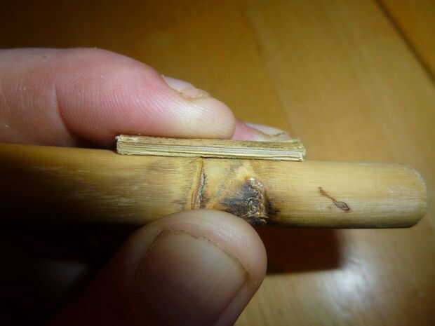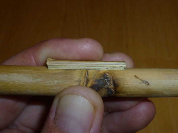 Están intentando obtener el nodo tan suave como sea posible. Usted quiere deshacerse de la cresta que va alrededor del bambú, ya que es donde más aire se perderán en cuando aplicamos el pájaro.