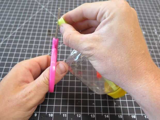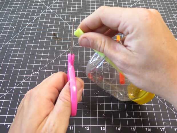 Doblar el tallo de flauta (la paja amarilla en este caso) en dos y corte un orificio triangular en el lado. Al desplegarlo, será un diamante y el lugar perfecto para usted cubrir y descubrir con los dedos. Esto hará que tu botella Boogie flauta notas diferentes disponibles.