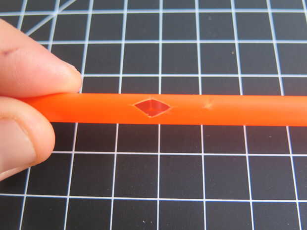 Vamos a darle nuestra flauta algunas gama! Añadir los agujeros de la flauta doblando la paja y pequeñas muescas triangulares de corte. Al desplegarlo, revelaré el orificio de la flauta en forma de diamante.