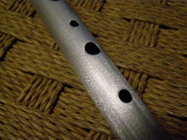 Así, la imagen de este paso es de mi equipo anterior, un pennywhistle seis agujeros de aluminio, madera (enebro) y cinta de electricista. Siento mucho que no tomo ninguna foto... Tal vez yo se otro silbato de estaño y utilizar el proyecto para otro Instructable.