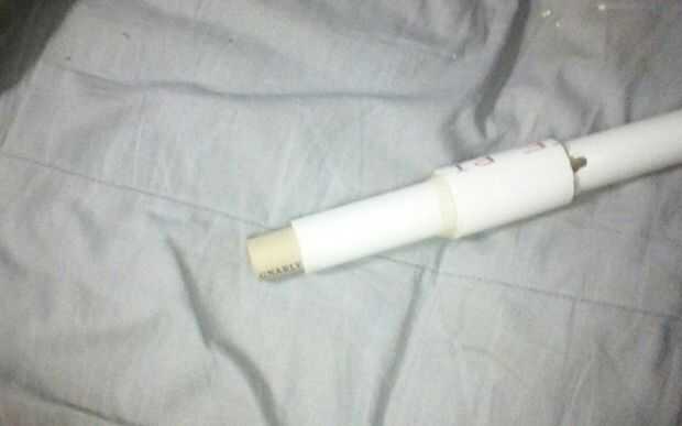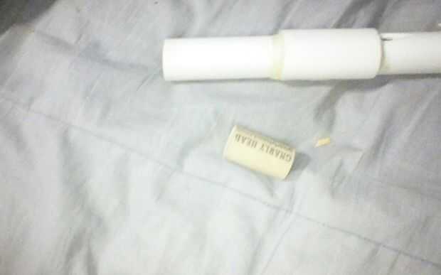 a continuación tomé un corcho que era del mismo diámetro que el interior de la tubería y taladrar un orificio de tamaño mediano en ella un resbalado en el orificio superior de la tubería, esto hace que sea más cómodo para jugar y para sostener algunos supervivencia artículos dentro.
