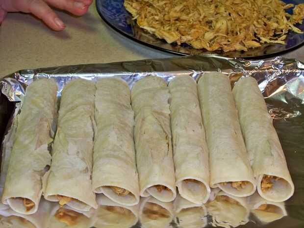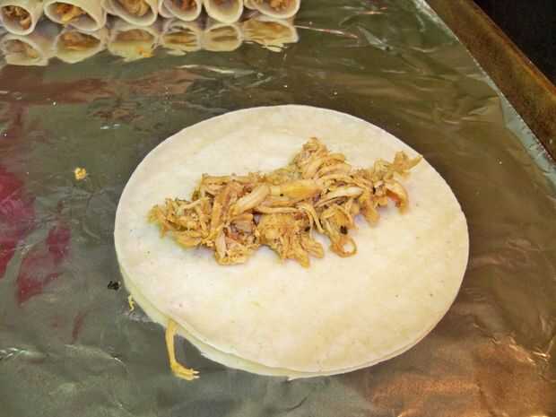 Asegúrese de dejar algo de carne para enchiladas si quieres tener ambos la misma noche. Una vez que todos se ruedan, apartar y Precaliente unos 2-3 pulgadas de aceite sobre fuego alto med.