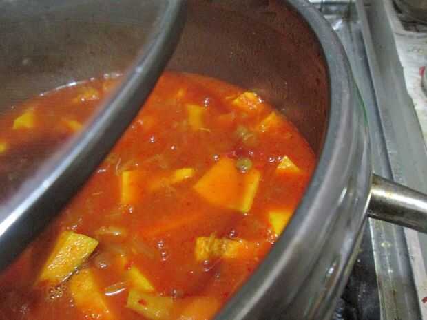 Flavorful sin carne y estofado de calabaza picante (10 / 13 paso)
