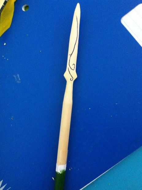 Una zona de la flecha de cabeza es ampliar de la espiga así utilizar masilla para madera para formar las piezas que sobresalen.