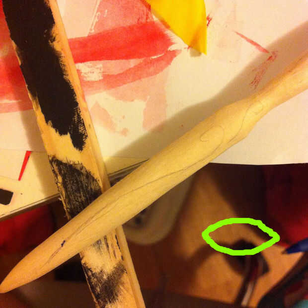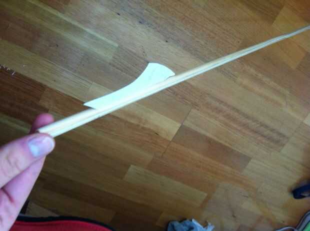 Para obtener el fin (nock) en línea con la punta de flecha, algunas cuerdas a la punta del palillo y tire de él hasta el final donde estará el nock.